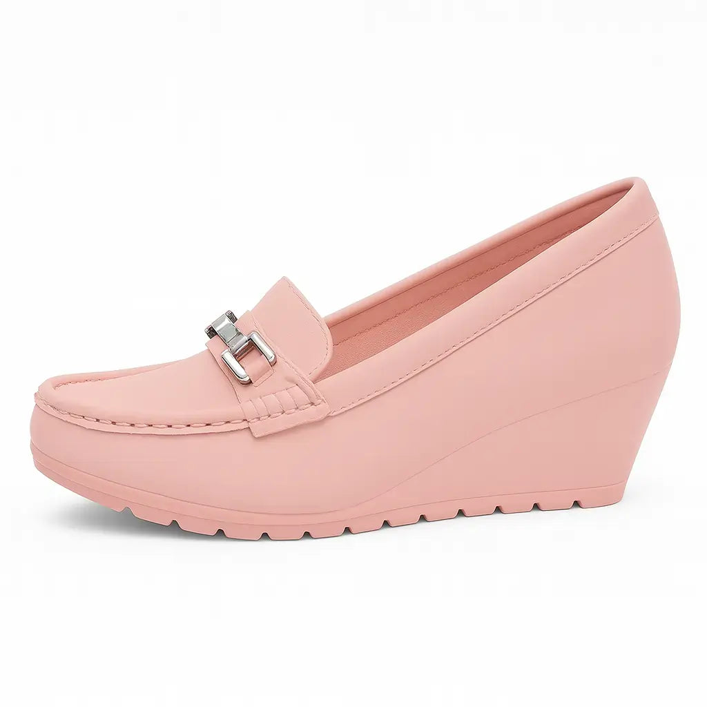 The soft, cushioned insole supports your feet from morning to evening. The wedge heel adds natural height while keeping your balance steady, so you feel confident without the strain of thin heels. The slip-on design saves time and fits easily, while the light tread sole keeps each step secure.