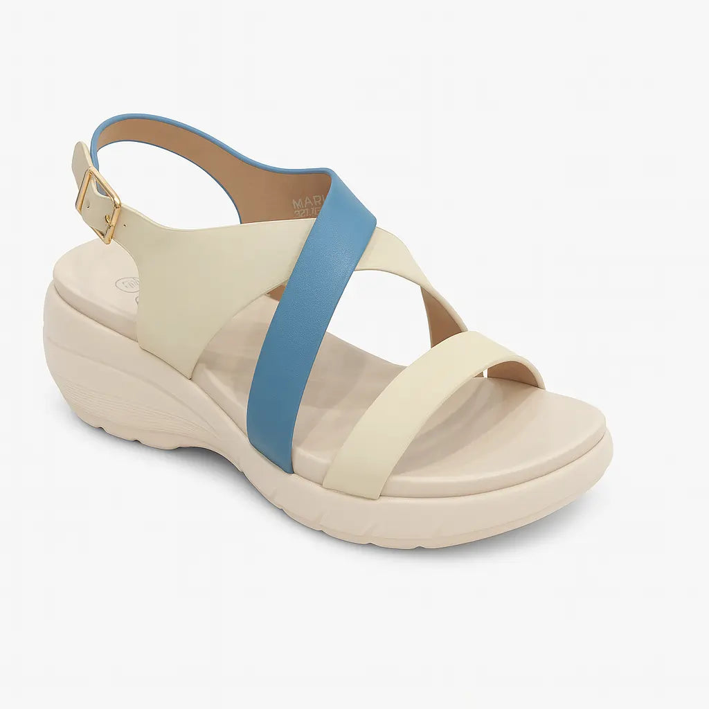 Strappy Comfort Wedge Sandals – Beige & Blue